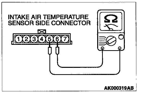 2. Measure the resistance between intake air temperature sensor side connector terminal 5 and 6.