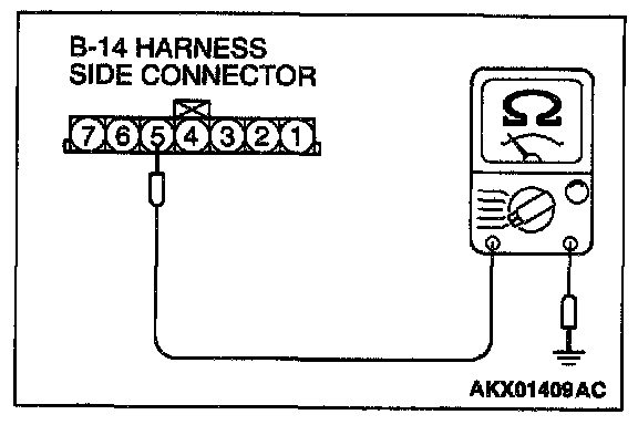 1. Disconnect the connector B-14 and measure at the harness side.
