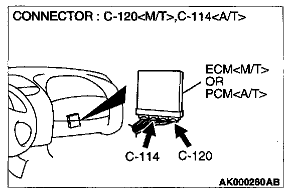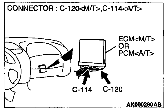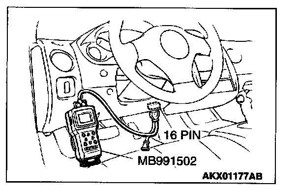 CAUTION: To prevent damage to scan tool MB991502, always turn the ignition switch to the "LOCK" (OFF) position before connecting or disconnecting scan tool MB991502.