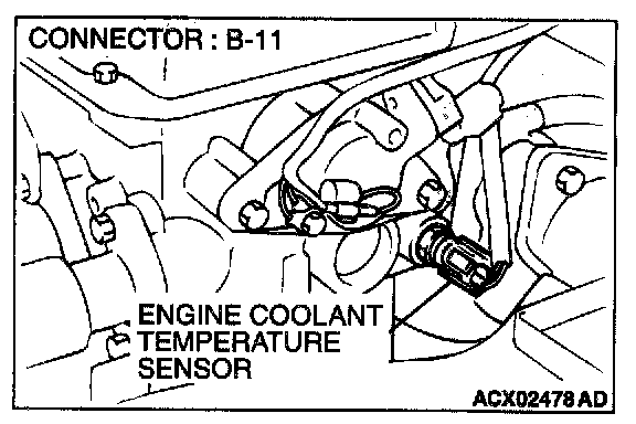 1. Disconnect the engine coolant temperature sensor connector B-11.