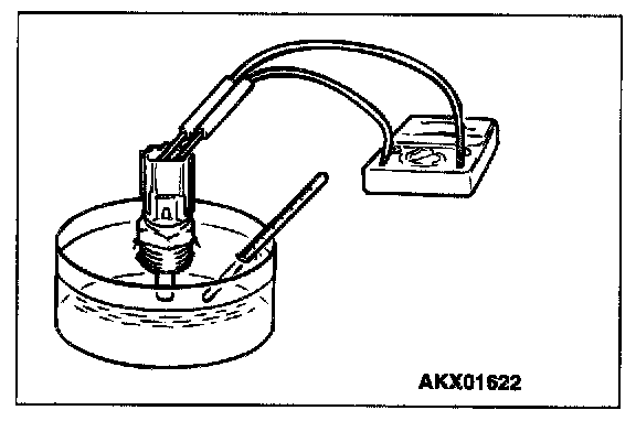 3. With the temperature sensing portion of engine coolant temperature sensor immersed in hot water, check resistance.
