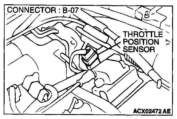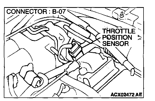 STEP 2. Check connector B-07 at throttle position sensor for damage.