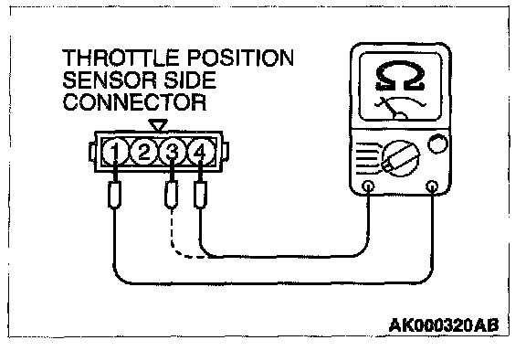3. Measure resistance between the throttle position sensor side connector terminal 1 and 3.