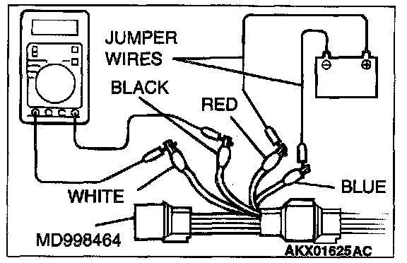 CAUTION: Be very careful when connecting the jumper wires; incorrect connection can damage the heated oxygen sensor (front).