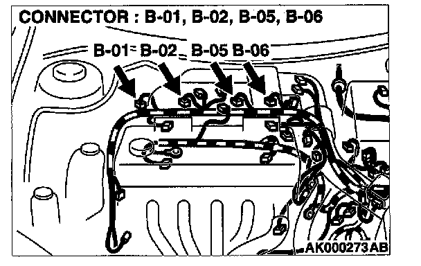 STEP 6. Check connector B-01, B-02, B-05, B-06 at injector for damage.