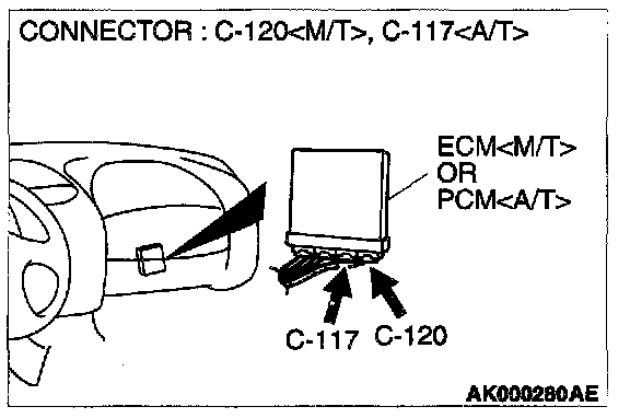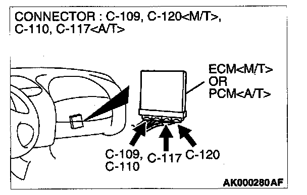 CAUTION: To prevent damage to scan tool MB991502, always turn the ignition switch to the "LOCK" (OFF) position before connecting or disconnecting scan tool MB991502.