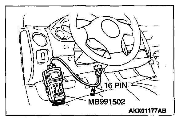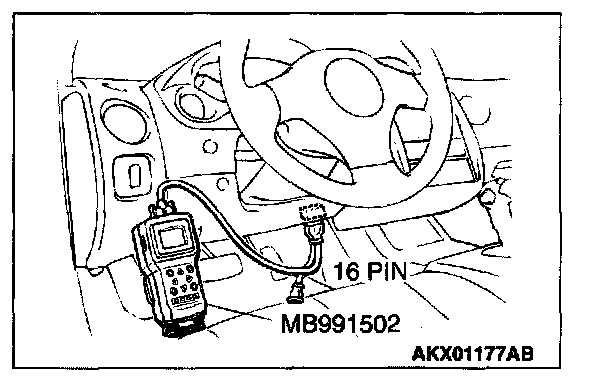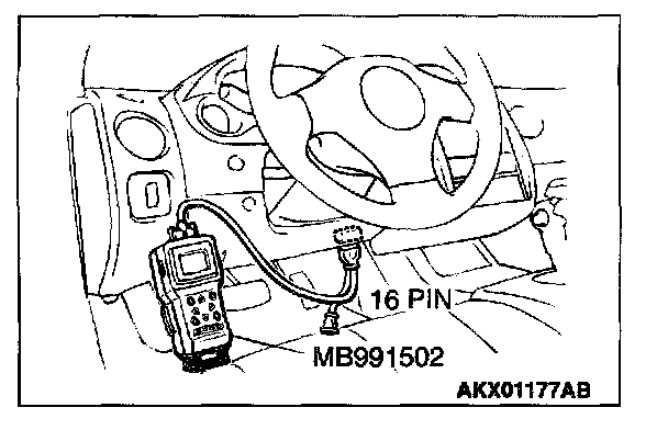 1. Connect scan tool MB991502 to the data link connector.