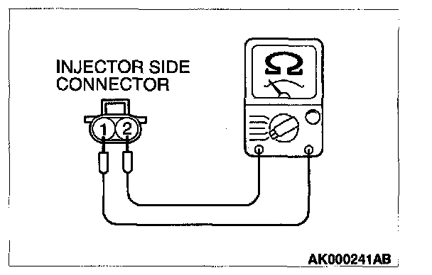 2. Measure the resistance between injector side connector terminal 1 and 2.