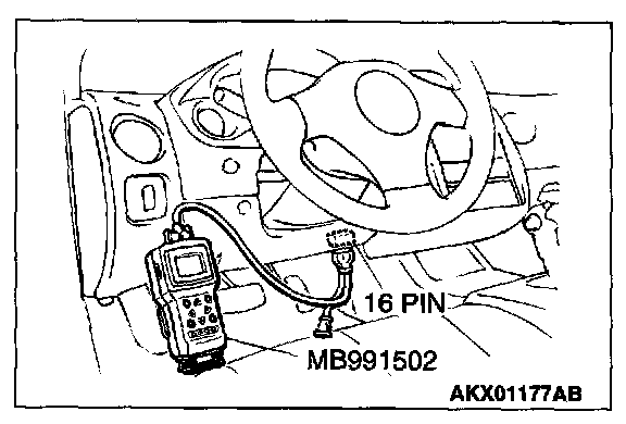 1. Connect scan tool MB991502 to the data link connector.