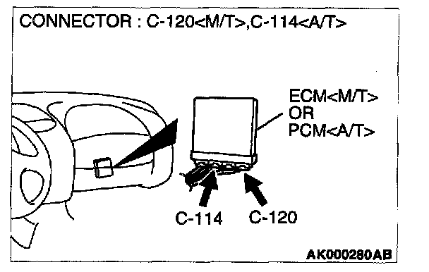 CAUTION: To prevent damage to scan tool MB991502, always turn the ignition switch to the "LOCK" (OFF) position before connecting or disconnecting scan tool MB991502.