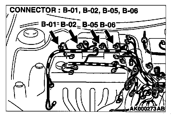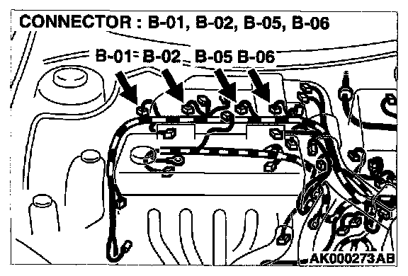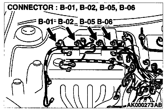 STEP 8. Check connector B-01, B-02, B-05, B-06 at injector for damage.