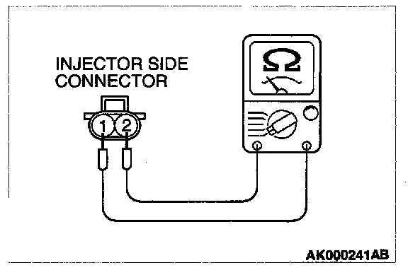 2. Measure the resistance between injector side connector terminal 1 and 2.