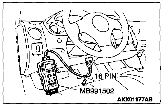 1. Connect scan tool MB991502 to the data link connector.