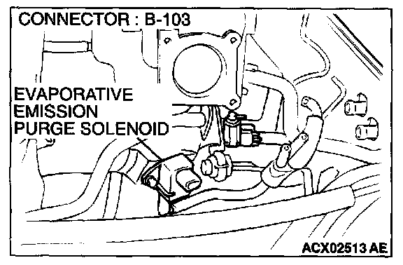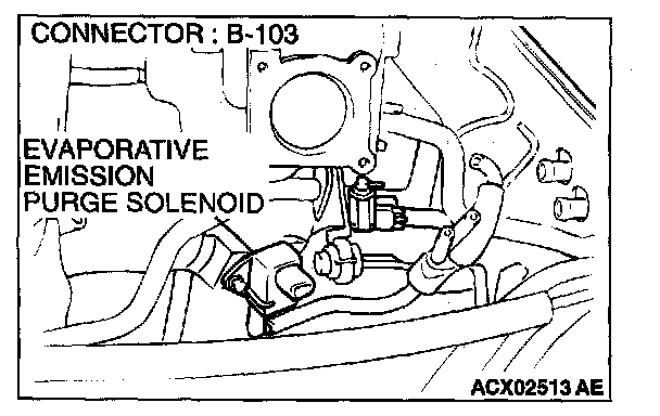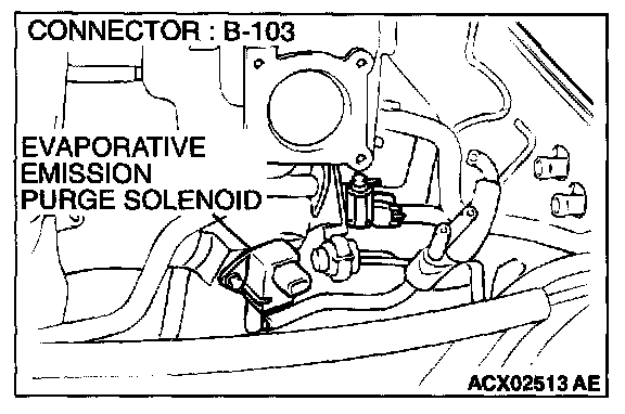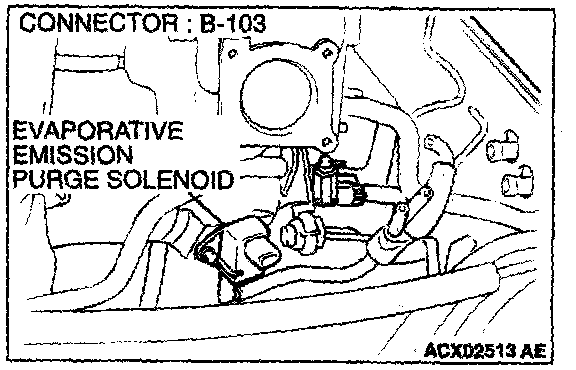 1. Disconnect the evaporative emission purge solenoid connector B-103.