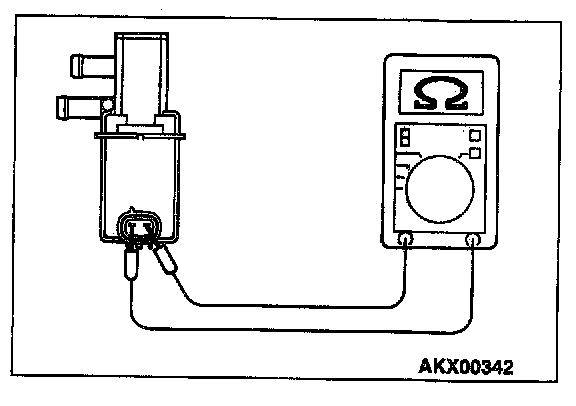 2. Measure the resistance between evaporative emission purge solenoid side connector terminal 1 and 2.