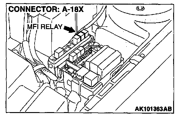 STEP 5. Check connector A-18X at MFI relay for damage.