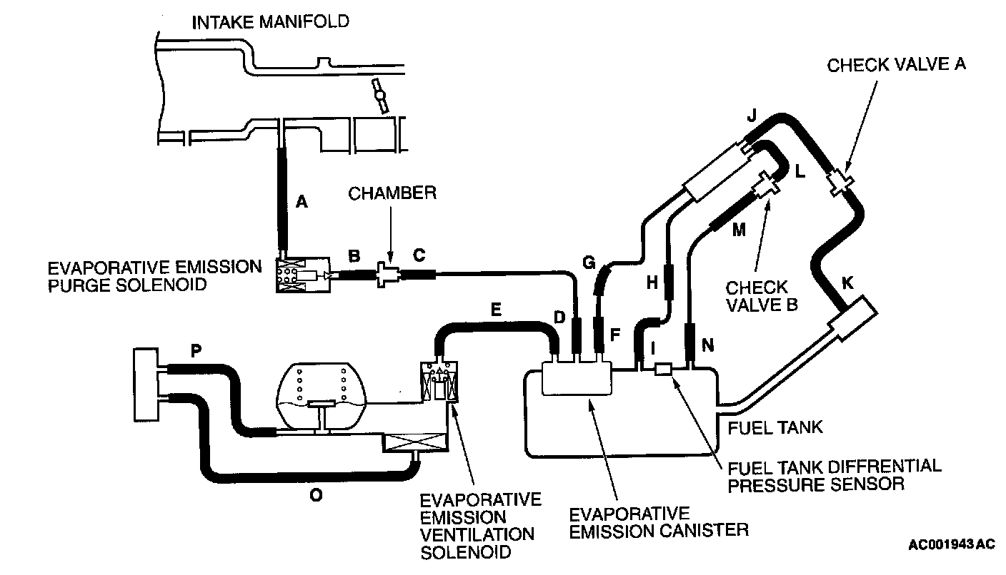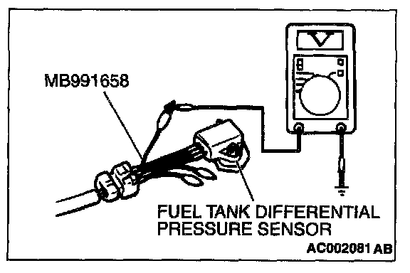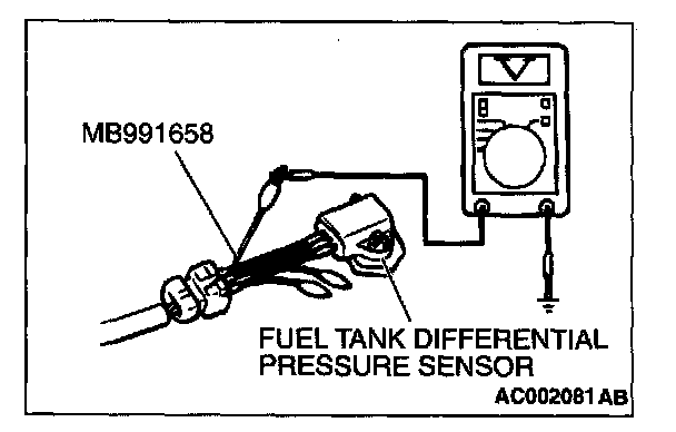 - To check a system blockage, do a performance test which uses a mechanical vacuum gauge and scan tool MB991502 set on the fuel tank differential pressure sensor (TANK PRSSNSR73.)