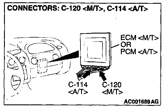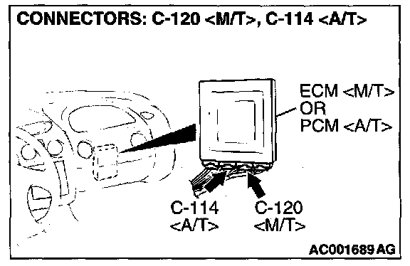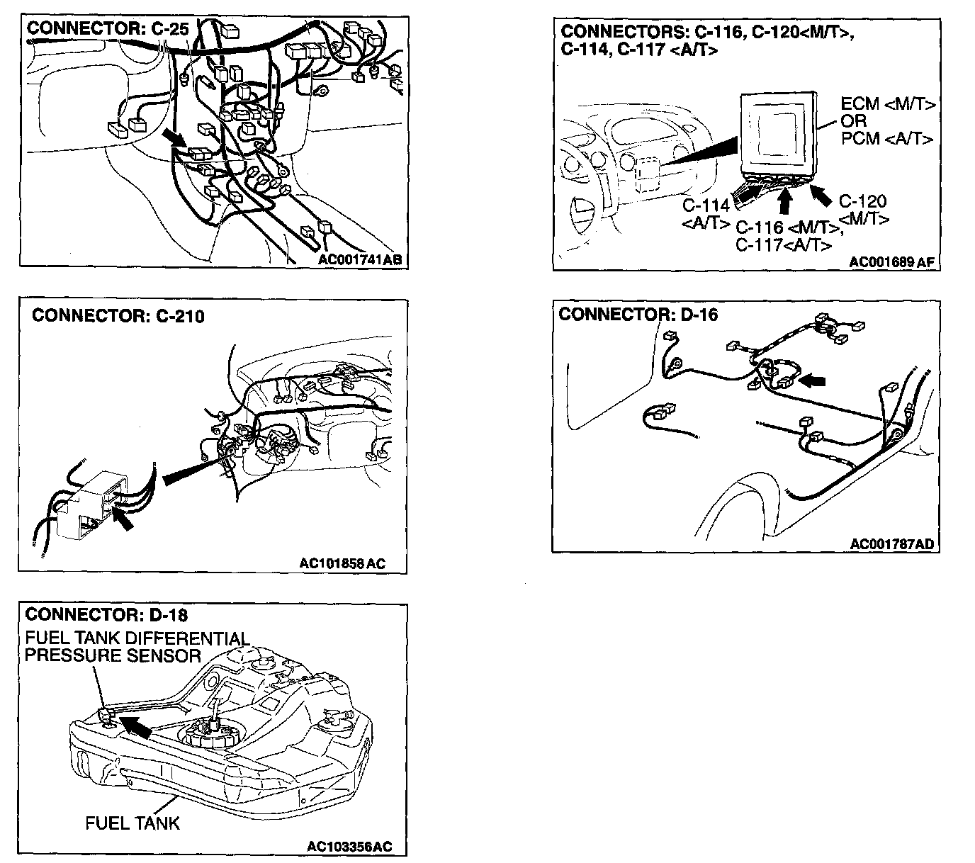STEP 13. Check connectors C-25, C-210, D-16 at intermediate connector and C-120 at ECM