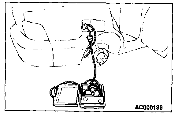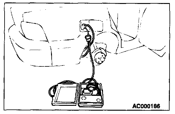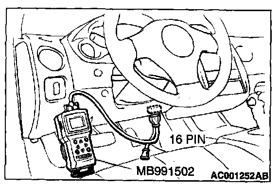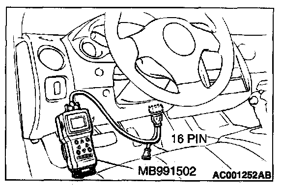 CAUTION: To prevent damage to scan tool MB991502, always turn the ignition switch to the "LOCK" (OFF) position before connecting or disconnecting scan tool MB991502.
