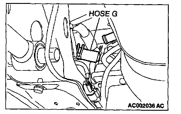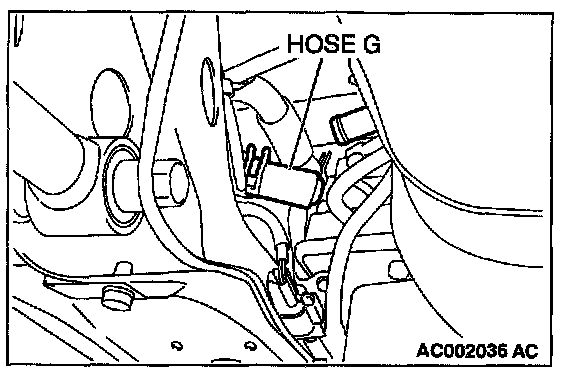 2. Disconnect hose G from the evaporative emission canister side, and plug the hose from which the pipes have been disconnected.