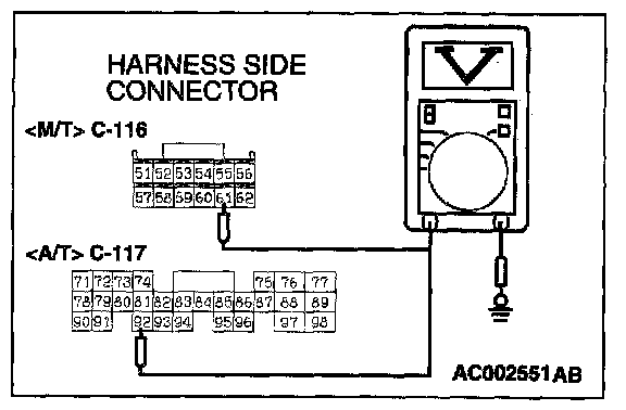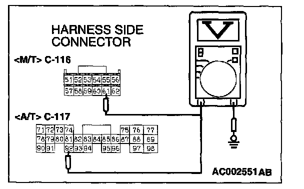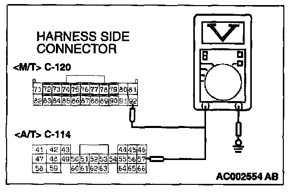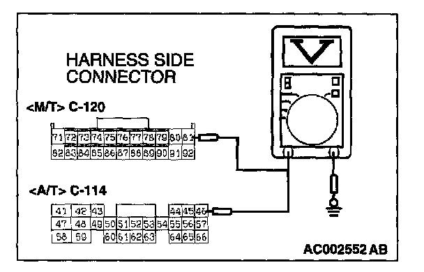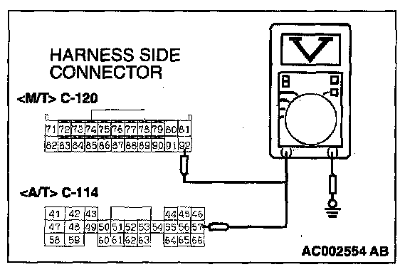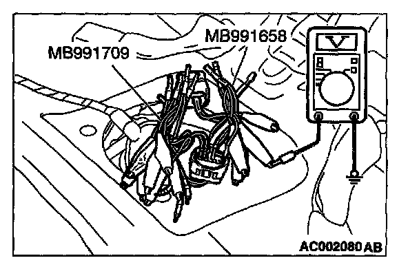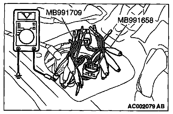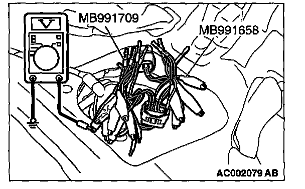 2. Use special tool (MB991658) to connect terminal 3 of the disconnected sensor connector and those of the harness side connector respectively.