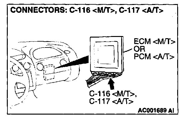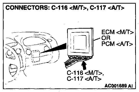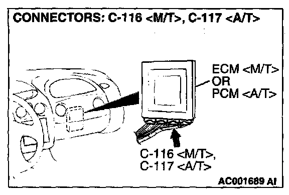 STEP 4. Check connectors C-25, C-210, D-16 at intermediate connector and C-116 at ECM