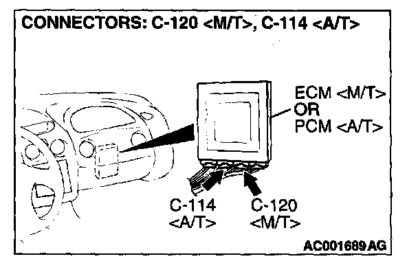 STEP 20. Check connectors C-25, C-210, D-16 at intermediate connector and C-120 at ECM