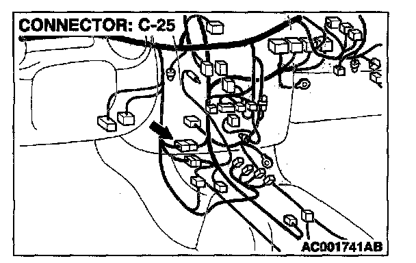 STEP 25. Check connectors C-25, C-210, D-16 at intermediate connector and C-116 at ECM
