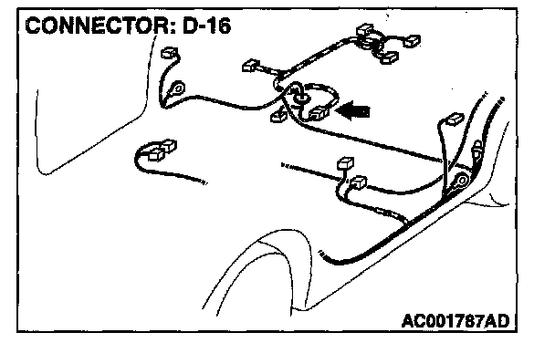 2. Use special tool (MB991709) to connect terminal 6 between connectors of the intermediate connector.