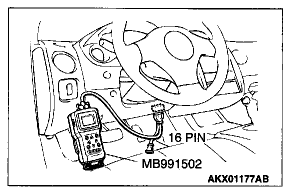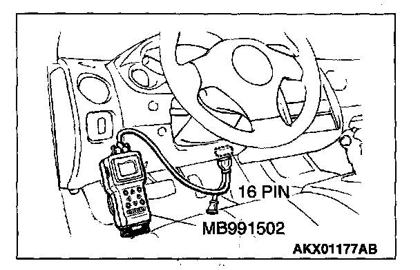 1. Connect scan tool MB991502 to the data link connector.