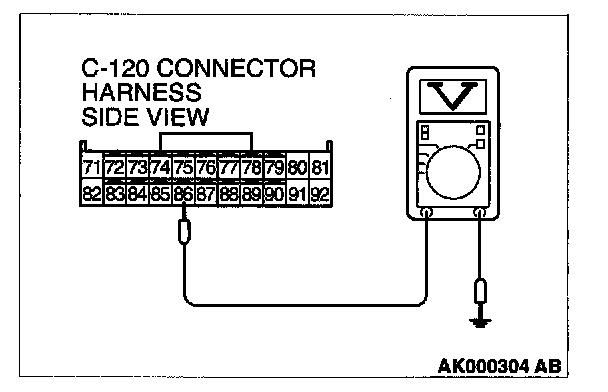 STEP 3. Using the oscilloscope, check the sensor output voltage at ECM connector C-120.