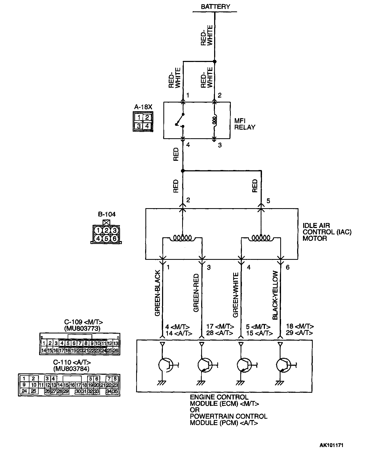 - The idle air control motor power is supplied from the MFI relay (terminal 4).