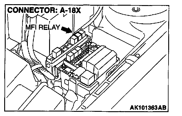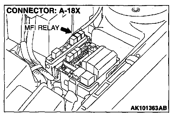 STEP 6 Check connector A-18X at MFI relay for damage.