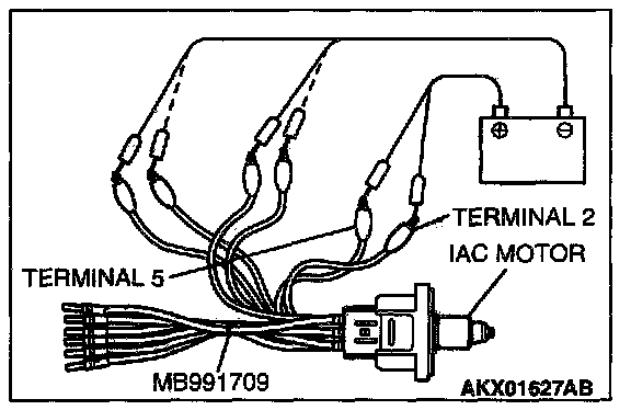 2. Connect special tool MB991709 to the idle air control motor. (All terminals should be connected.)