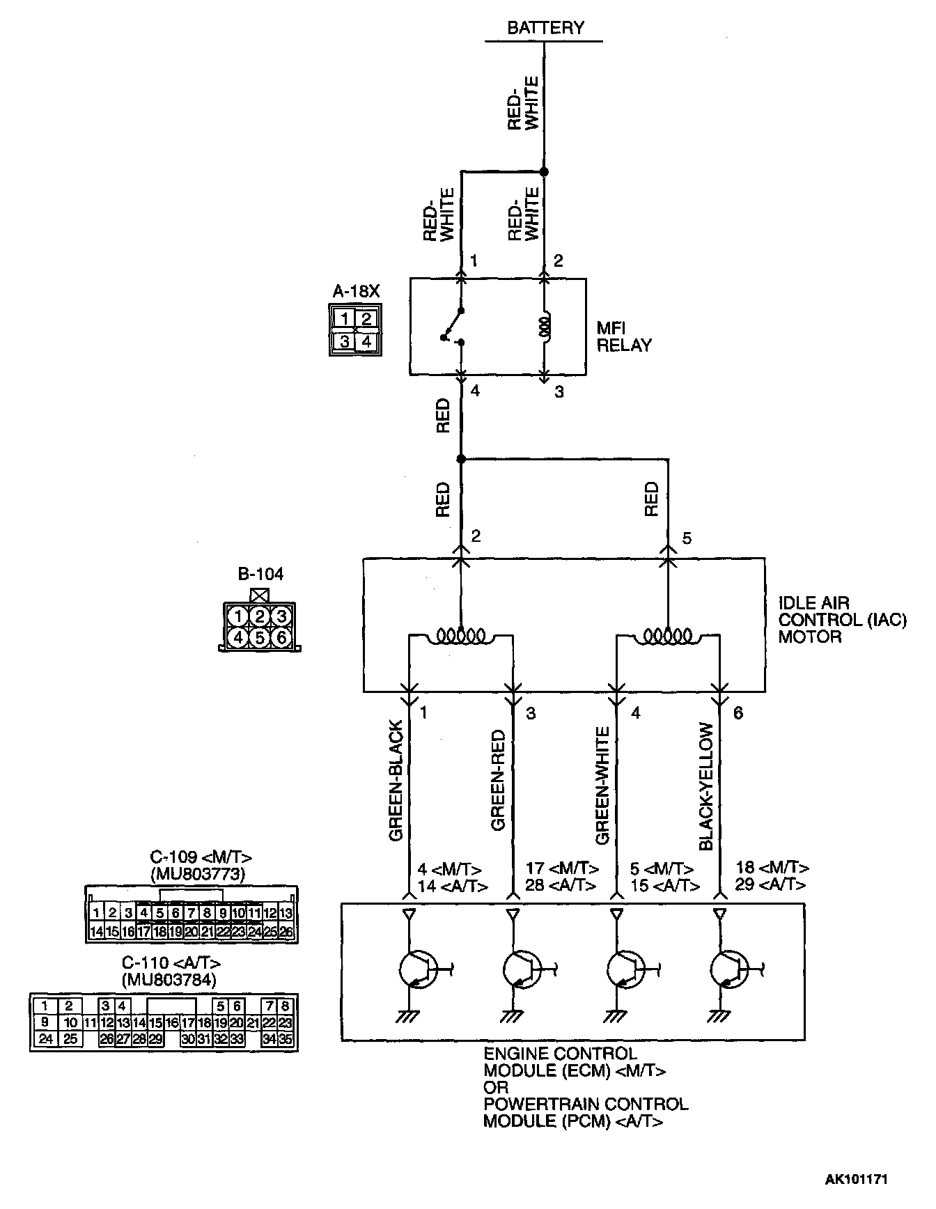 - The idle air control motor power is supplied from the MFI relay (terminal 4).