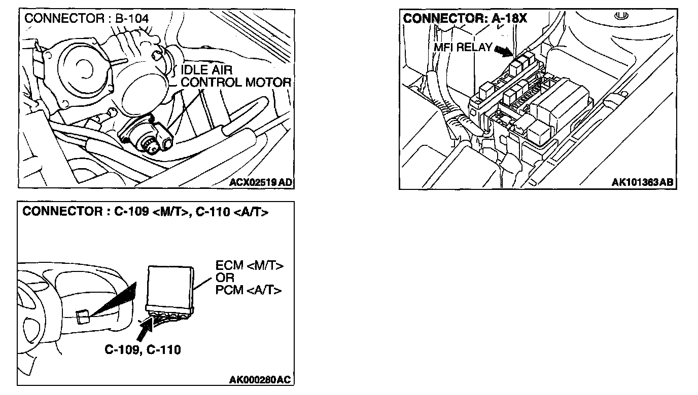 1. Disconnect the idle air control motor connector B-104.
