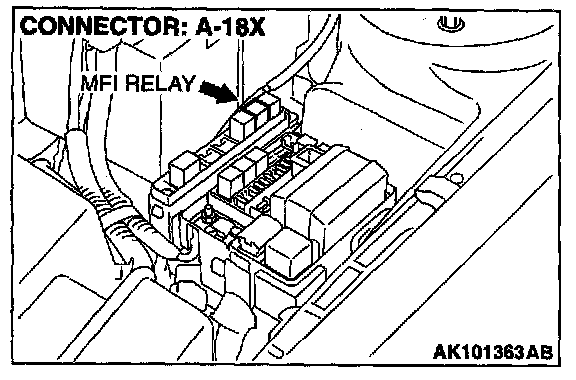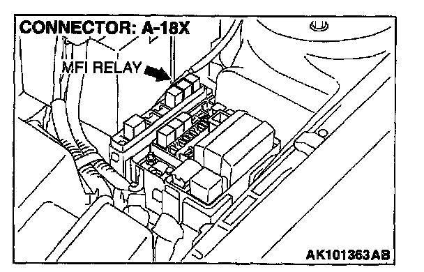 STEP 6. Check connector A-18X at MFI relay for damage.