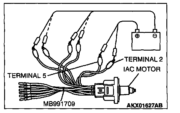 2. Connect special tool MB991709 to the idle air control motor. (All terminals should be connected.)