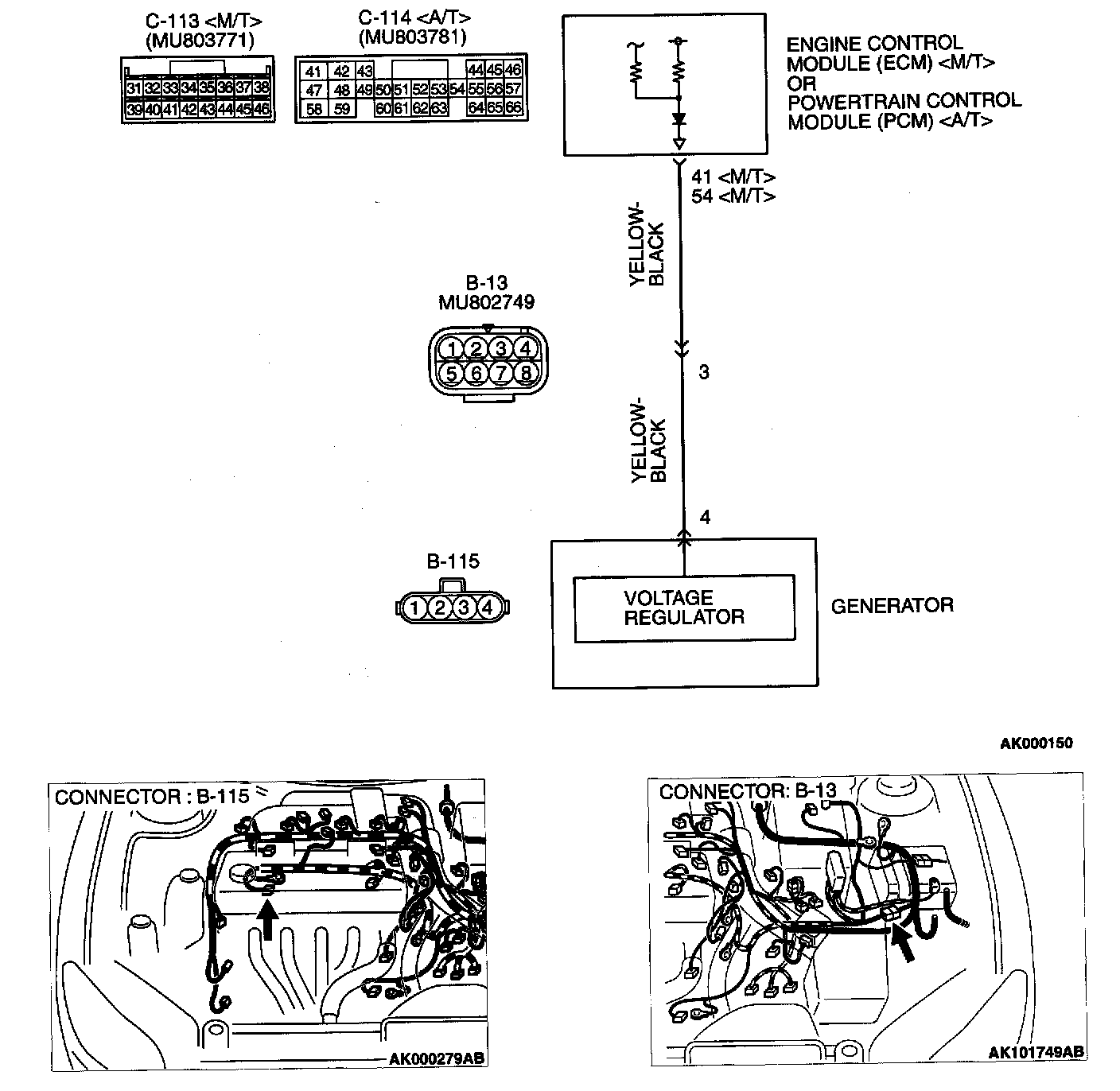 STEP 6. Check the voltage at generator harness side connector B-115.