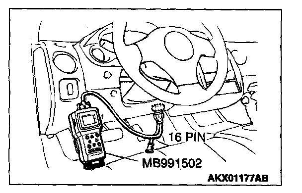 1. Connect scan tool MB991502 to the data link connector.