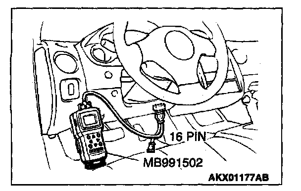 1. Connect scan tool MB991502 to the data link connector.