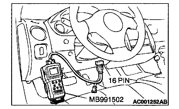 1. Connect scan tool MB991502 to data link connector (16 pin).