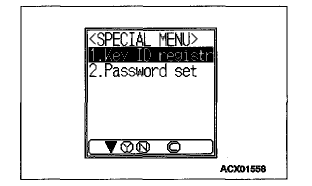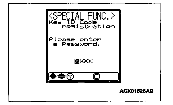 NOTE: Using the key ID register function will cause all key IDs that have been previously registered in the immobilizer-ECU to be erased. All keys need to be registered. Those which have been registered before should be on hand before using this function.