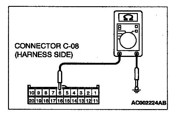 STEP 1. Check the multi-center display ground circuit at the multi-center display connector C-08 by backprobing.