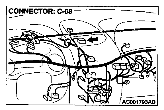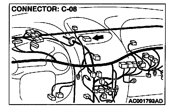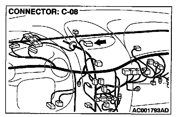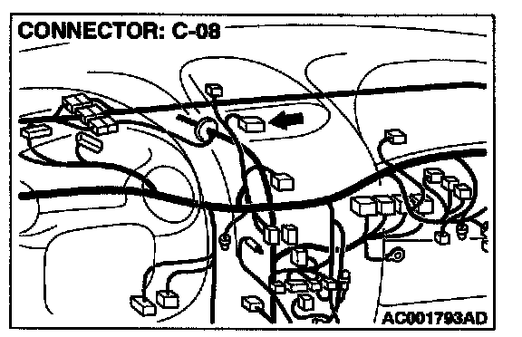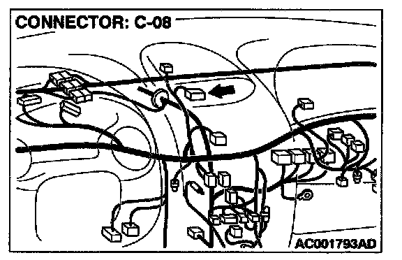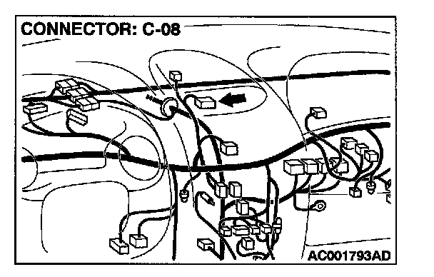 1. Do not disconnect the multi-center display connector C-08 and measure at the harness side by backprobing.