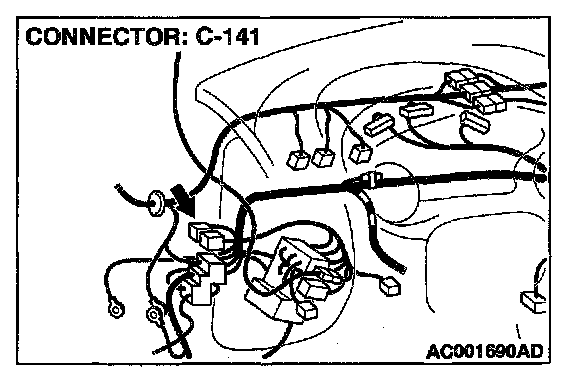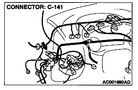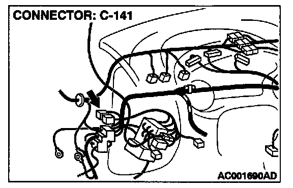 NOTE: After checking joint connector C-141, check the wires. If joint connector C-141 is damaged, repair or replace it. Refer to Harness Connector Inspection.