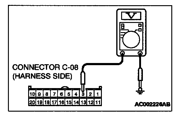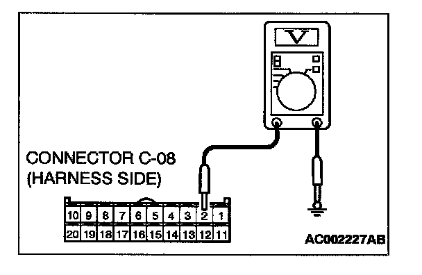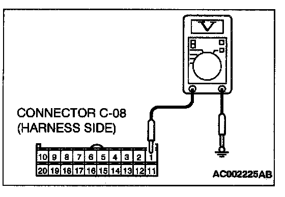STEP 4. Check the multi-center display power supply circuit (battery) at the multi-center display connector C-08 by backprobing.