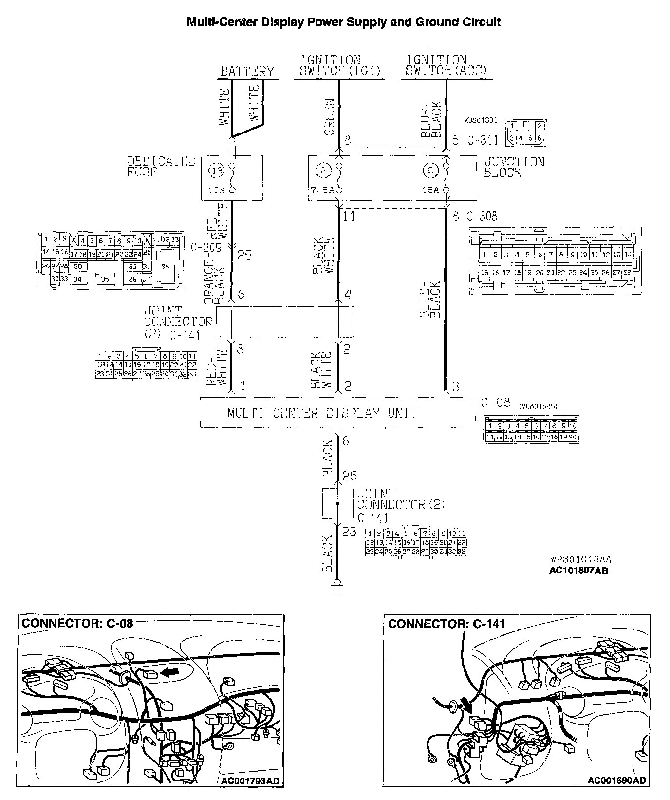 The Multi-Center Display does not Show Any Information.Multi-Center Display Power Supply And Ground Circuit: