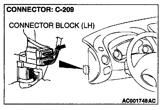 NOTE: After checking intermediate connector C-209, check the wires. If intermediate connector C-209 is damaged, repair or replace it. Refer to Harness Connector Inspection.