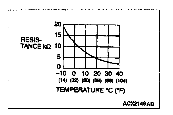 3. Measure the resistance between the ambient temperature sensor connector terminals at two or more temperature condition.